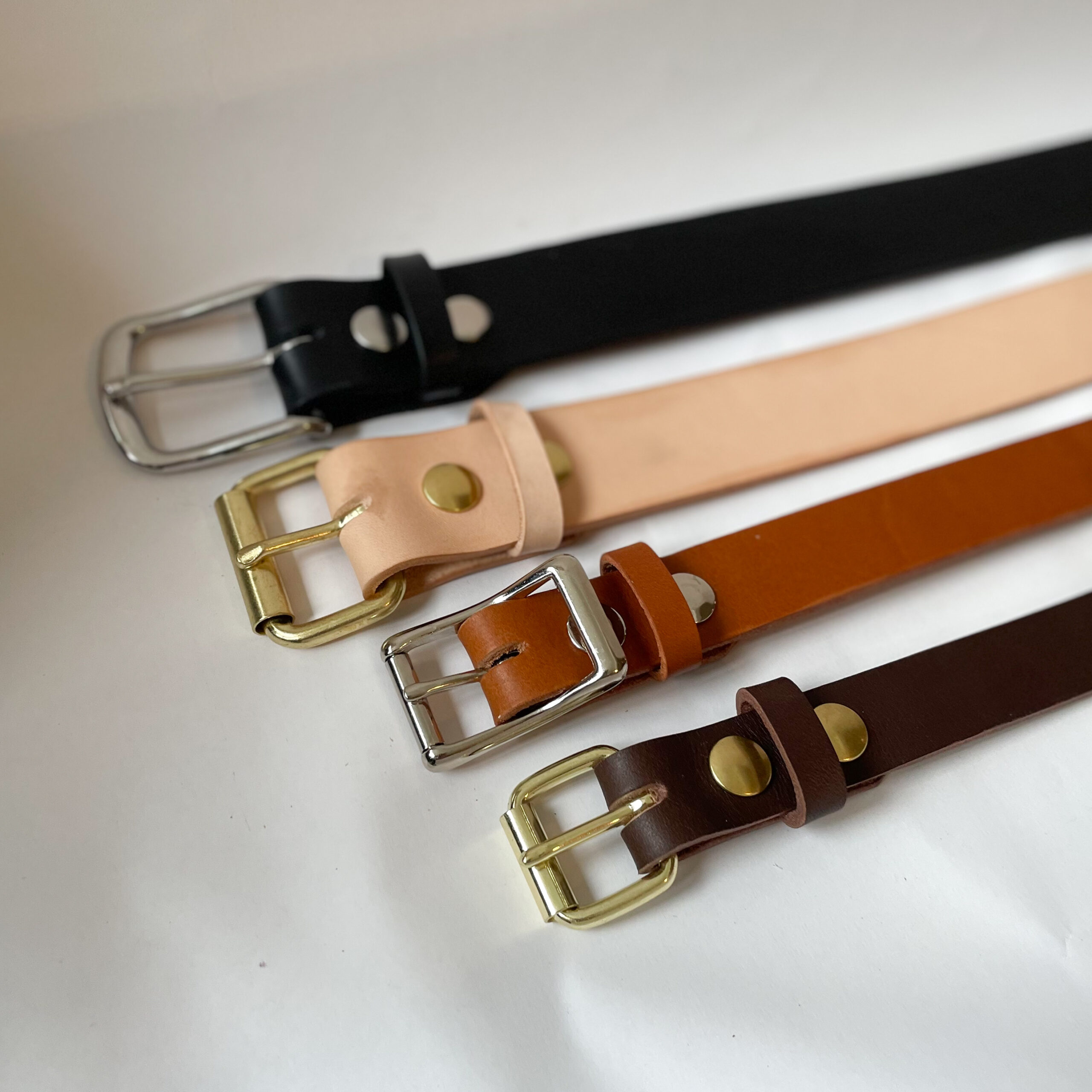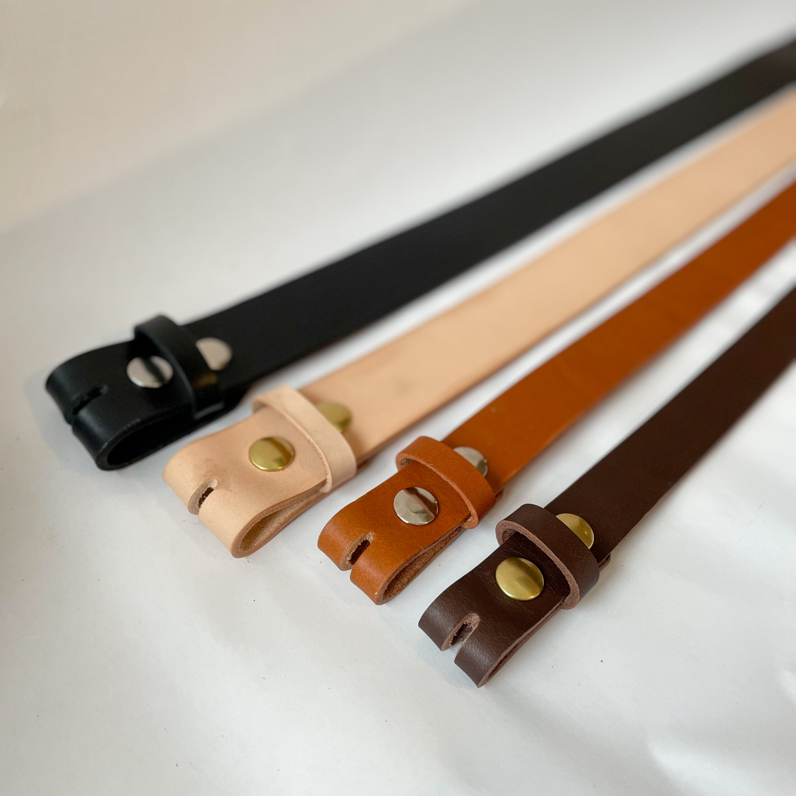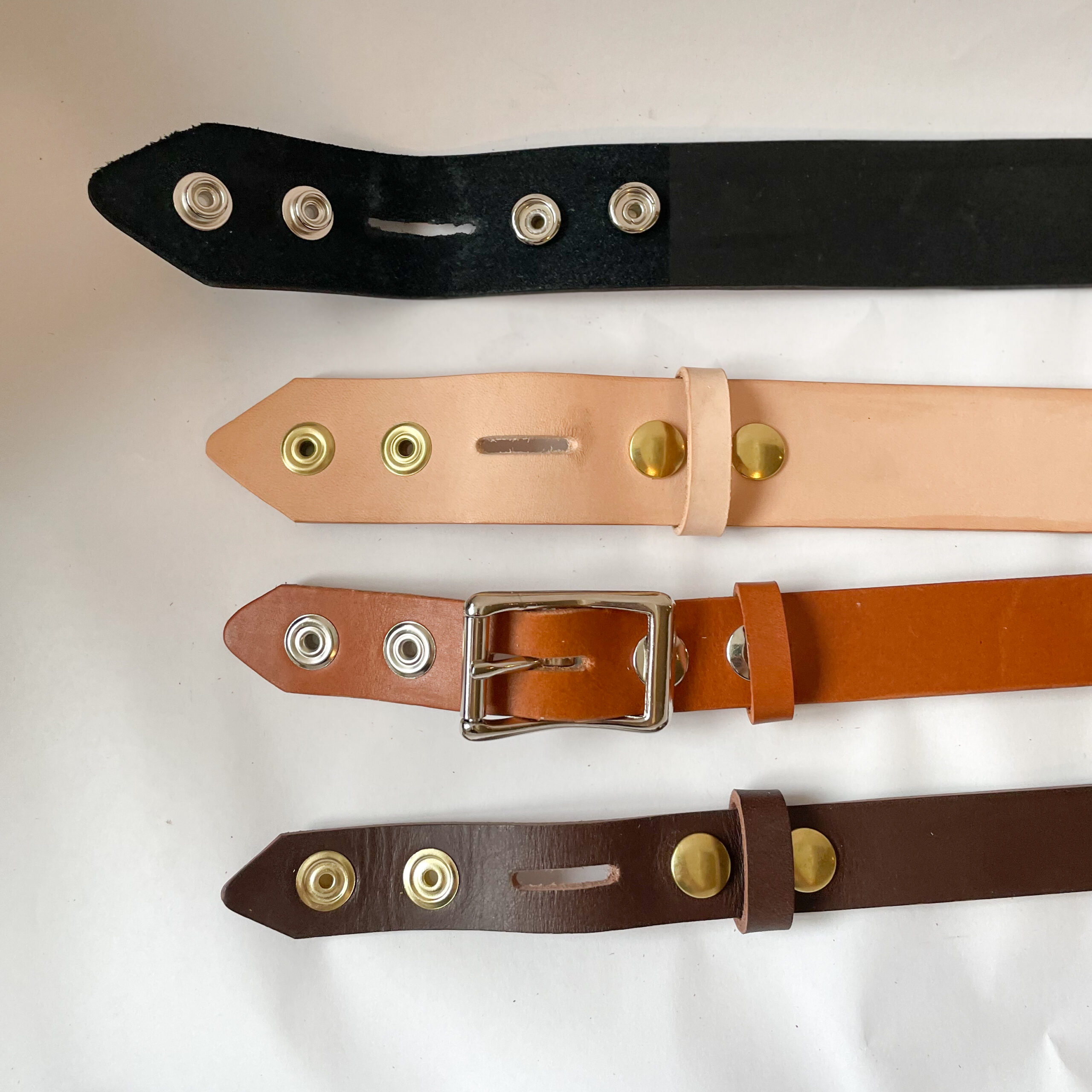 The Claude Undyed Belt has been a long time in the making. Made from 8-10oz vegetable-tanned leather, with a buckle of your choosing. Features a snap removal, making it easy to change out the buckle whenever you need it. The buckle chosen will also indicate to us the width of the entire belt.