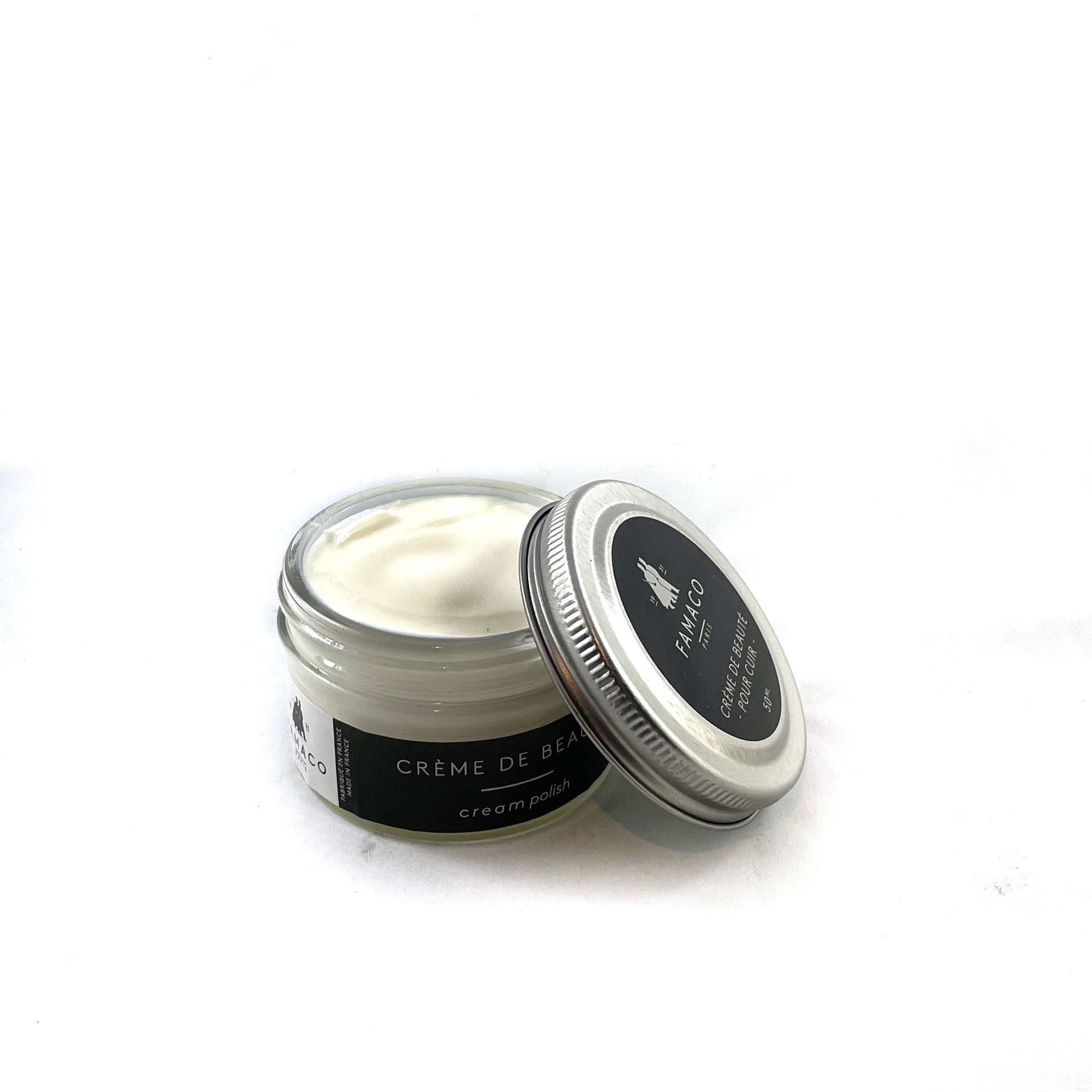 We consider Shoe Cream to be an essential part of one’s polishing supplies! Famaco makes a fantastic product, that we use in-house daily at Awl Together Leather. Shoe Creams generally carry more pigment than shoe polish, making them more suitable for reinvigorating colour and covering scuffs. As they contain beeswax, they will still buff to a great shine. Apply a light coat with either a dauber or a rag. Let sit for 5-10 minutes, buff with a soft, clean cloth or large buffing brush. Keep out of reach of children. Not recommended for suede or rough-out leathers, as it will flatten the naps.