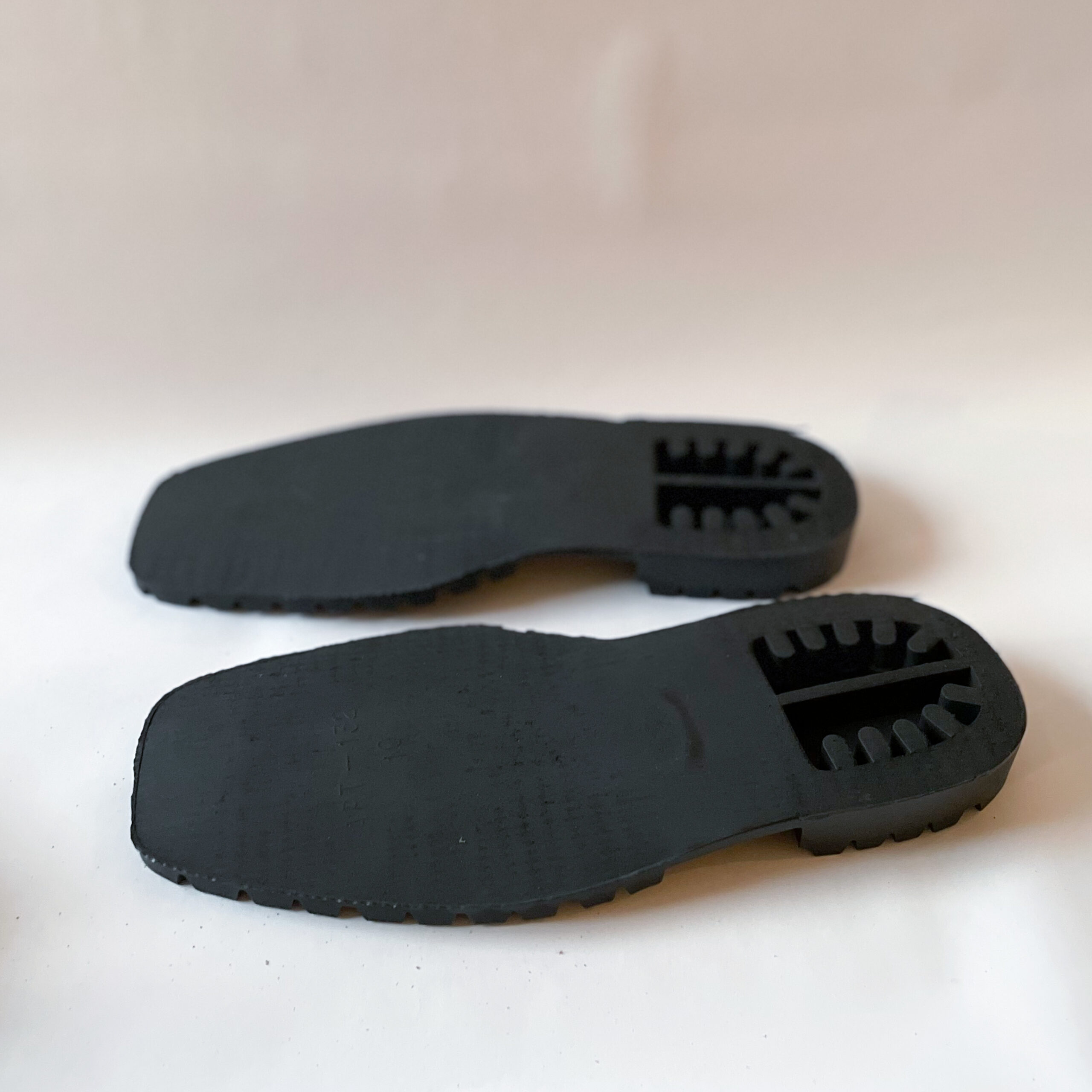 The Vibram 132 (Montagna) sole is a classic unit lug sole – often lovingly referred to as “the sole that conquered Mt. Everest”.  They have great tread and are very grippy, making them a popular choice for outdoor purposes. Soles are 9.5mm thick at the toe and 25mm thick at the heel. They feature the yellow Vibram logo. If you are looking for something still grippy, but with less tread than the Vibram 132, the Vibram 430 may be another option to take a look at.